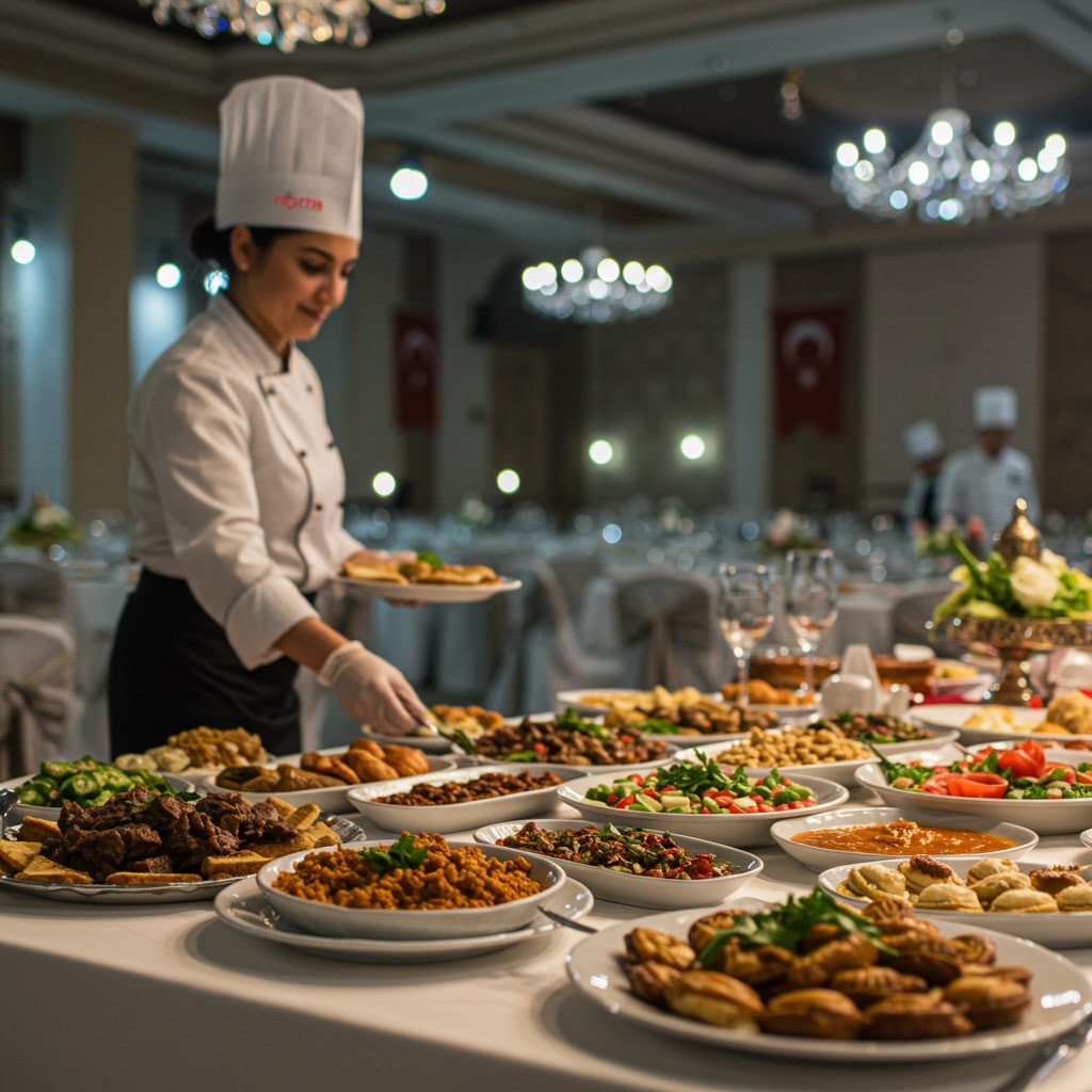 Türk kültüründe yemeğin yeri bambaşka olup, düğün günlerinde yemek servisi vardır. Bu sebepten ötürü yemek hazırlamayı, servis yapmayı, yemek yemeyi ve misafirlerimizi ağırlamayı seviyoruz. Düğünler, hayatınızın en özel, en unutulmaz anlarını paylaştığınız anlardır. Bu özel günü taçlandırmak için unutulmaz bir yemek deneyimi sunmak istemez misiniz? Düğün yemekleri hizmetleri, gelin ile damadın en mutlu günlerine lezzetli, görsel şölenlerle eşlik eden, özel olarak tasarlanmış catering hizmetleridir. Bu hizmet, düğününüzün lezzetli, keyif dolu anılara dönüşmesini sağlar. Düğün yemekleri hizmetleri, sizin ve sevdiklerinizin damak zevkine hitap eden, özel menülerle gelin ile damadın hayallerini gerçeğe dönüştürmek için tasarlanır. Uzman şeflerimiz, sizin için en lezzetli yemekleri hazırlamak için ellerinden gelenin en iyisini yaparlar. Seçtiğiniz menü seçenekleri, geleneksel tatlar, uluslararası lezzetler veya modern sunumlarla harmanlanarak, unutulmaz bir ziyafet sunar. Düğün yemekleri hizmetleri, organizasyonunuzun her aşamasında size, misafirlerinize özel ilgi gösterir. Profesyonel servis ekibimiz, güler yüzlü, özenli yaklaşımıyla sizin ve konuklarınızın rahatını sağlar. Her tabağın sanatsal bir şölen olduğu bir sunumla, davetlilerinizin yemek deneyimine görsel ve lezzetli bir ziyafet katmak için çalışırız. Hazır yemek de düğünlere göre farklılık göstermektedir. Türk kültüründe düğünler çok kalabalık olduğu için yemek ile müzik ön plandadır. Geleneksel Konya yemeklerinde et ağırlıklı olduğu için düğünde ana yemekler etli olur ve ana yemekten sonra tatlı ikram edilir. Bunlarla birlikte Türk düğünlerinde geleneksel çorba, Konya pilavı ile bamya da ikram edilir. Nokta Yemek olarak uzman ve tecrübeli mutfak ekibimizle hazırlanan bu lezzetli yemekler, büyük titizlikle hazırlanarak sizlere sunulmaktadır.